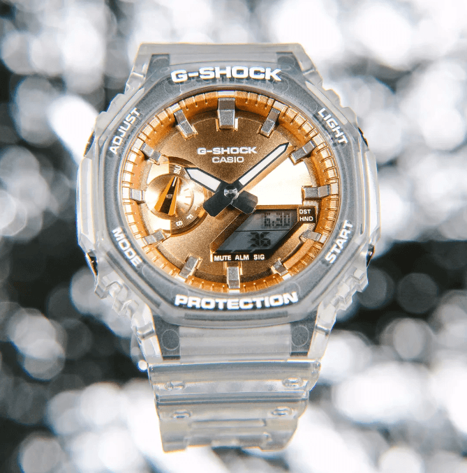 Scegliete il vostro look preferito: il GA-2100BM-7A8ER con quadrante ARGENTO ; oppure il GA-2100BM-7A2ER con cassa e cinturino trasparenti quadrante azzurro.