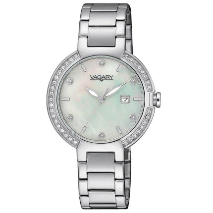 Orologio Vagary G.Matic 101, solo tempo uomo. Cassa in acciaio da 40 mm, quadrante turchese con indici e lancette silver, datario alle ore 3. Movimento automatico visibile attraverso il fondello con 40 ore di riserva di carica. Vetro minerale, e cinturino in acciaio. Impermeabilità di 10 atm.