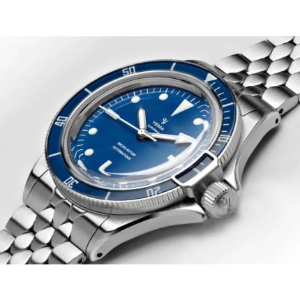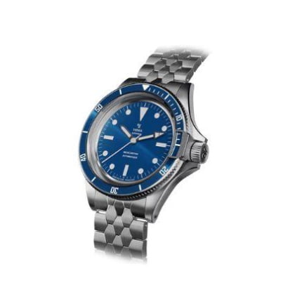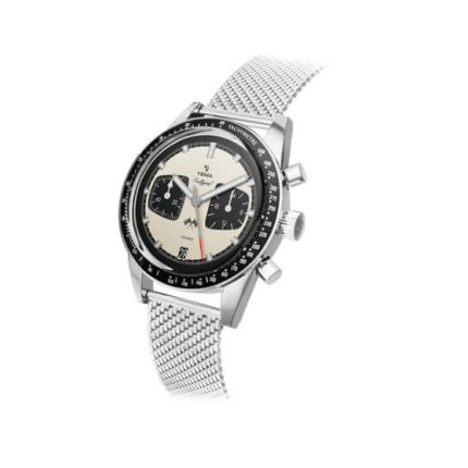 Progettato e sviluppato in collaborazione con l’aeronautica militare francese, il Flygraf Bi-Compax French Air Force è dotato del calibro ibrido VK61 di Seiko con cronografo bicompax verticale e logo Yema e Aeronautica Francese stampati sul quadrante.