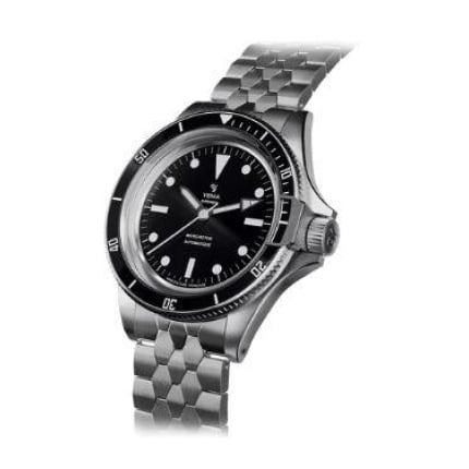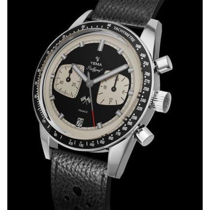 Progettato e sviluppato in collaborazione con l’aeronautica militare francese, il Flygraf Bi-Compax French Air Force è dotato del calibro ibrido VK61 di Seiko con cronografo bicompax verticale e logo Yema e Aeronautica Francese stampati sul quadrante.