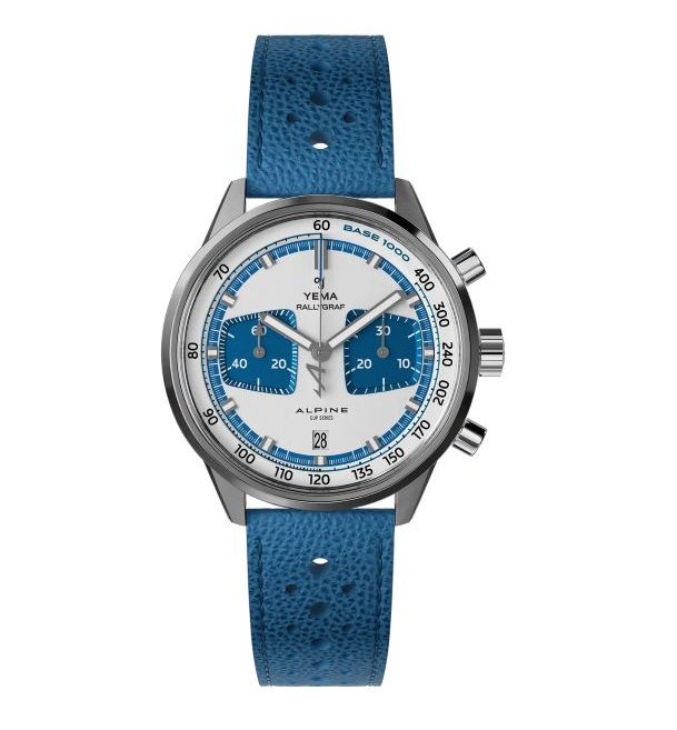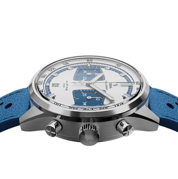 Esclusiva Edizione Limitata è completata da un cinturino in pelle granulata traforata in blu Alpine, che richiama il colore del quadrante e cattura l’essenza vivace dello stile delle corse francesi classiche