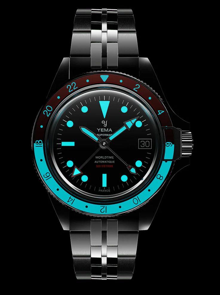 Un’importante evoluzione dell’iconico modello YEMA degli anni ’60. Il nuovo Superman 500 GMT conserva le sue principali caratteristiche da immersione professionale. Fornendo al contempo una funzione 3 orari GMT per tutti i giramondo.